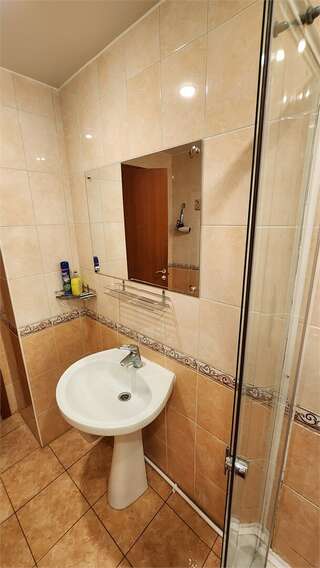 Небольшие недочеты в санузле, такие как : недостаток полотенец и подтеки.